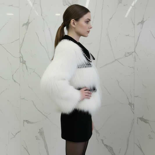 BESPAAR 50%Black & Pearl Zwarte Jas met Wit Bont