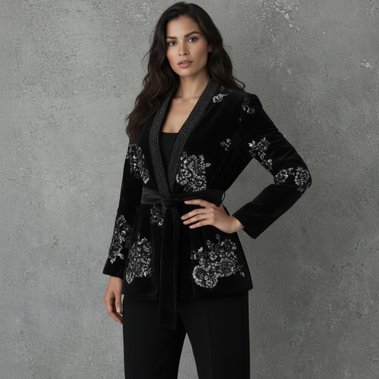 BESPAAR 40%Velours Gedetailleerde Jas Midnight Bloom