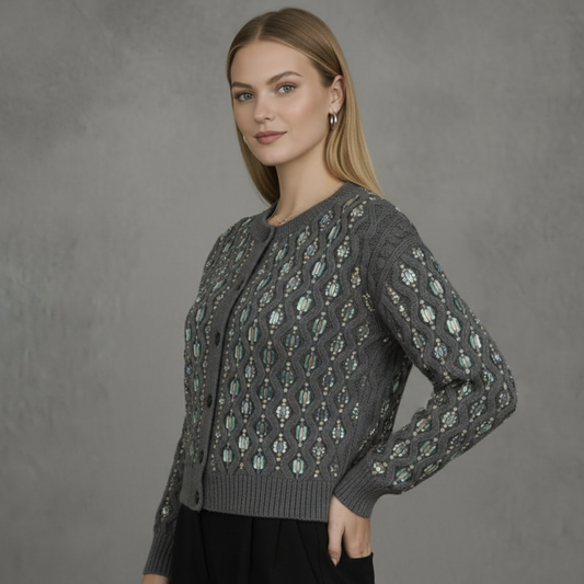 Winterlight Kabelgebreid Vest met Kralenborduursel