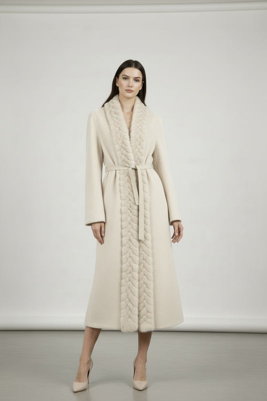 Braided Effect Faux Fur Lange Wrap Mantel Lichtbeige