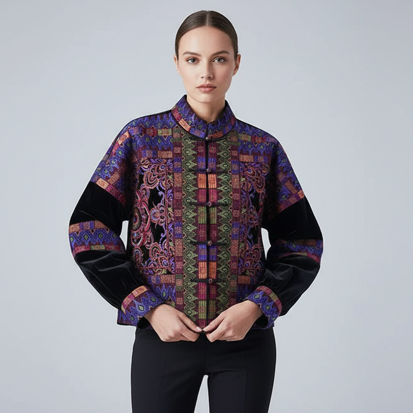 Imperial Palace Velours Jas met Rijke borduursels Paleis-Geïnspireerd Detail
